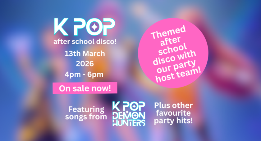 KPop disco event 13th March 4pm – 6pm pre-book online only (we close at 3:30pm to the general public this date).